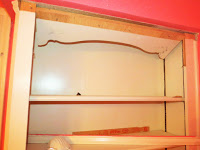 decorative woodwork at the top of the bookcase, so I knocked it out. Literally.